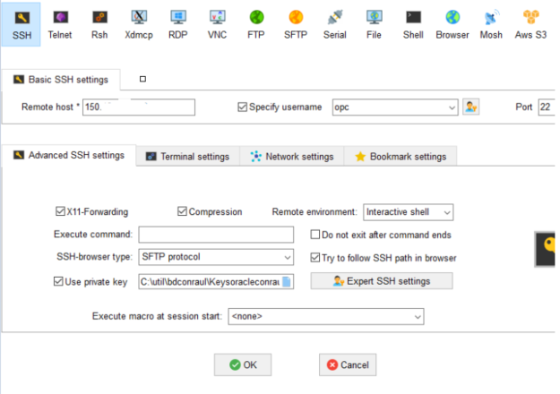 a. Remote Host: IP Pública de la pestaña nodes de OCI, en nuestro caso 150.X.X.X